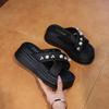 Dicke Sohle coole Hausschuhe Damen 2025 neu Sommer Perlendesign Gefühl passender Rock Kreuzriemen Ein-Zehen-Hausschuhe Damen