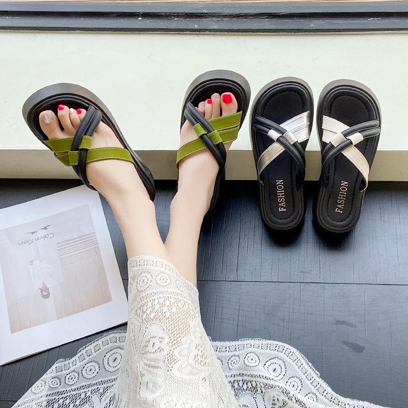 Muffin-Kühlpantoffeln mit dickem Boden Damen Sommerbekleidung 2025 neue Mode mit Rock Ein-Wort-Schlappen Strand-Badesandalen