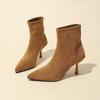 Temperamentvolle Wildleder-Kurzstiefel mit spitzer Zehenpartie und hohem Absatz, Damenschuhe 2025 neue Herbst- und Winter-Samt-Koreanische kleine Stiefeletten