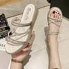 Zwei tragen Feenstil-Sandalen, Damen 2025 neue Damenmode Keilabsatz Strass trendy vielseitig coole Hausschuhe, Damen Sommer tragen