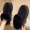 Mode Mode Bling Plateau Schneestiefel Damen Winter Weiches Kunstfell Übergröße Warme Stiefel Frau Rutschfest Abriebfest Botas Mujer