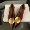 Fashion SUOJIALUN 2025 Autumn New Brand Women Pumps Shoes Fashion Gold Metal Shallow Slip On Single Shoes Thin Low Heel Dress Pumps