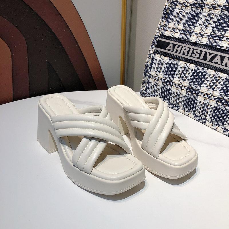 2025 Sommer neu Koreanische Version Modedesign Kreuzriemen High Heel Open Toe Coole Slipper Damen Dicke Ferse Wasserdicht Plateau Ein-Wort Pantoletten