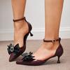 Mode Hlieny Weinrot Knöchelriemen Stilettos Für Frau Lackleder Schleife Spitze Zehen Slingbacks Hohe Absätze Sandalen Damen Pumps Schuhe