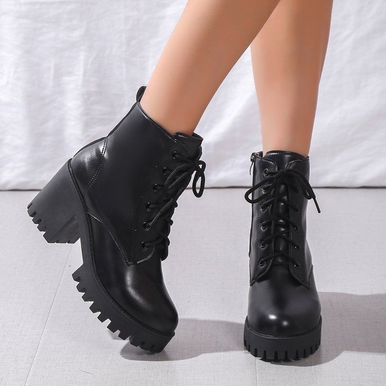 Kurze Damenstiefel mit dicker Sohle und rutschfester Sohle, Schnür-Martin-Stiefel, britische Mode, dicker Absatz, hochhackige kurze Stiefel, neu im Herbst und Winter
