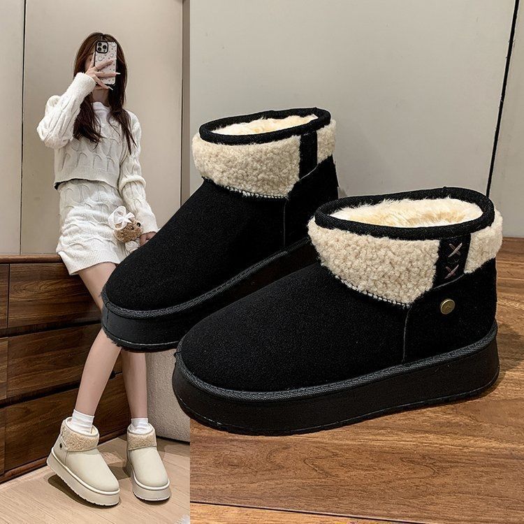 Dicksöhlige Schneestiefel Damen Fellintegriert Herbst und Winter gestapelt verdickt warm neu kurzer Schaft Student groß Baumwolle Damenschuhe