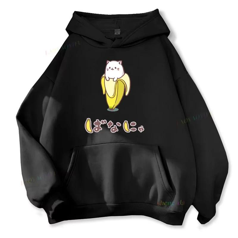 Langärmliger lustiger Bananenkatzen-Print Hoodie Harajuku Sweatshirts Streetwear Kängurutaschen-Hoodie Ästhetische Kleidung
