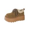 Mode Pelz Plateau Damen Schnee Stiefeletten Wildleder Mittelhohe Absätze Baumwolle Mary Janes Schuhe 2025 Trend Schnürung Kurzer Plüsch Winter Botas De Mujer
