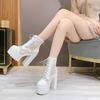 Mode Luftmaschen Sexy High Heels Stiefel Damen Fetisch Modell Schuhe Weiß Hochzeitsschuhe Braut Plateau Schuhe Reißverschluss Schwarz Punk Gothic