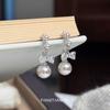 S925 Silver Needle Manta Rose Pearl Bow Pendant Earrings Premium Niche Design