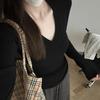 Damen einfarbiges V-Ausschnitt Langarm Bodycon Top - Herbst/Winter 2025