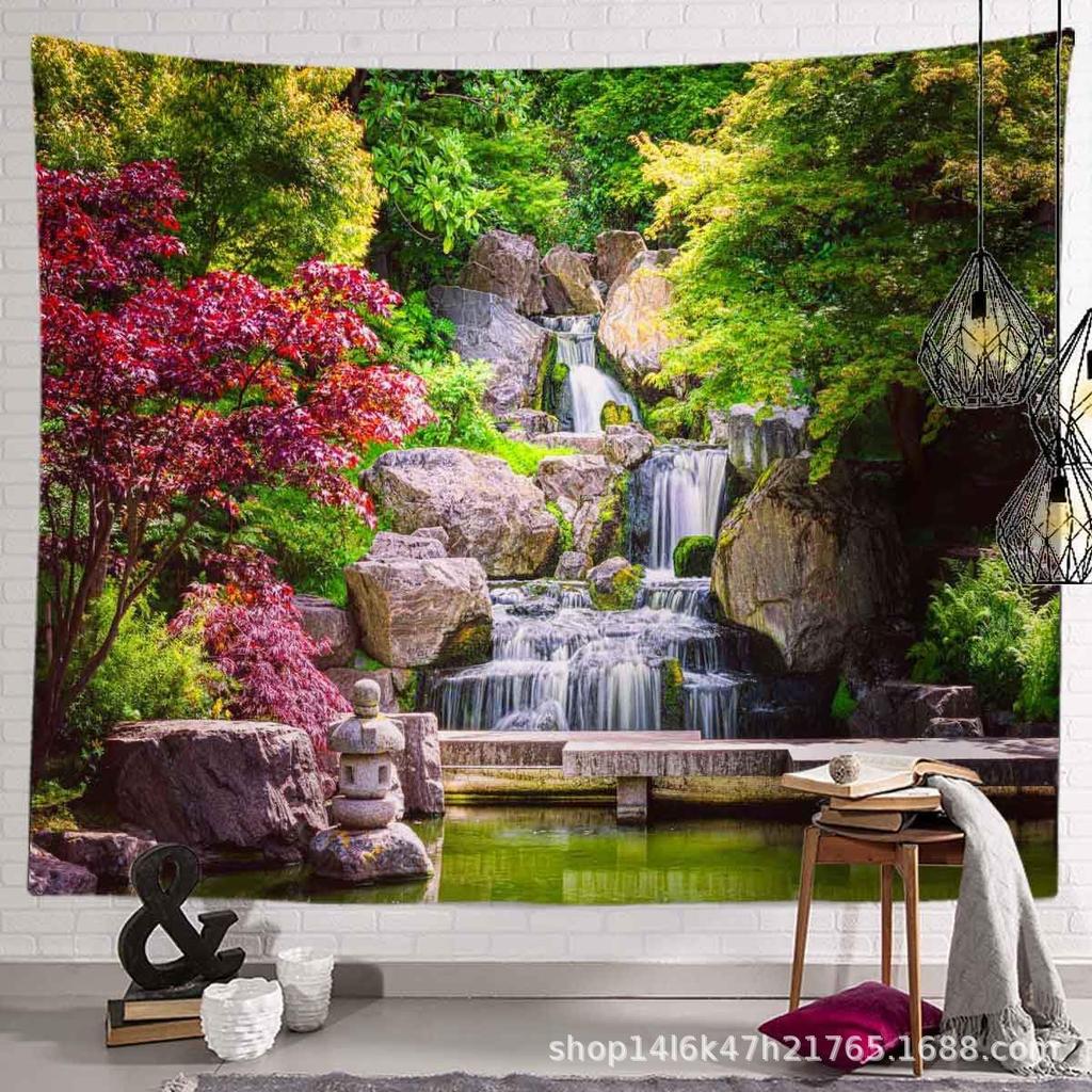 Garden Landscape Tapestry Park Waterfall Maple Tree Carpet Room Hanging Cloth Bedroom Living Room Decoration Cloth Background Cloth Hanging Painting