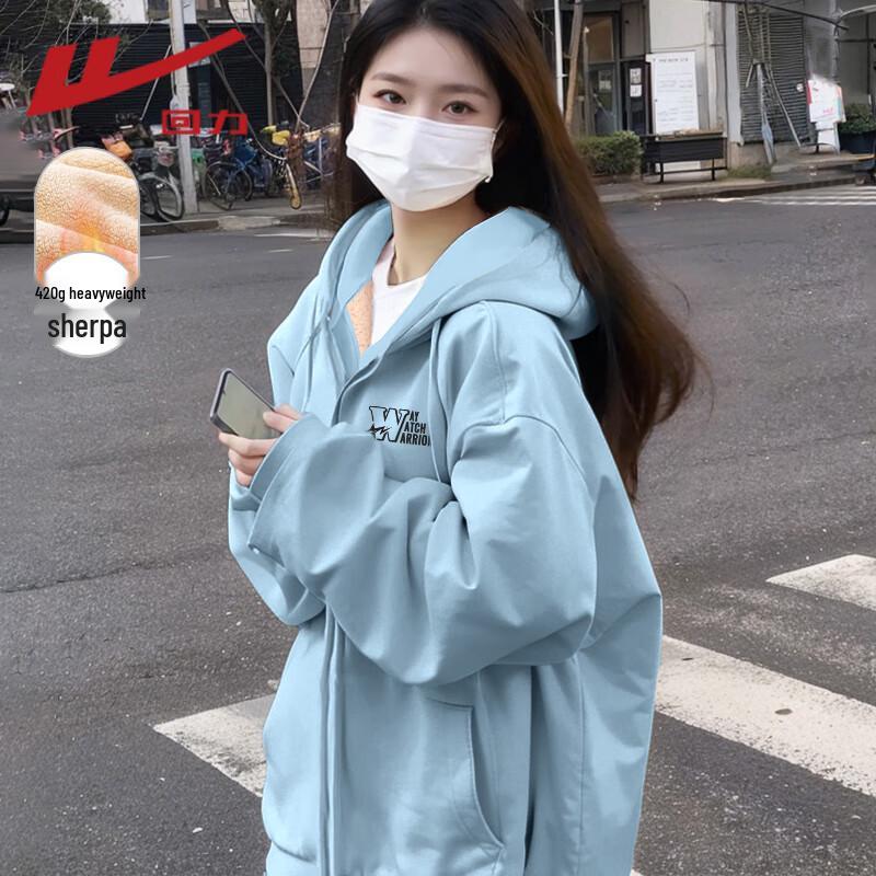 Warrior Women's Winter Plush Lamb Wool Hooded Cardigan