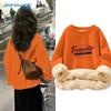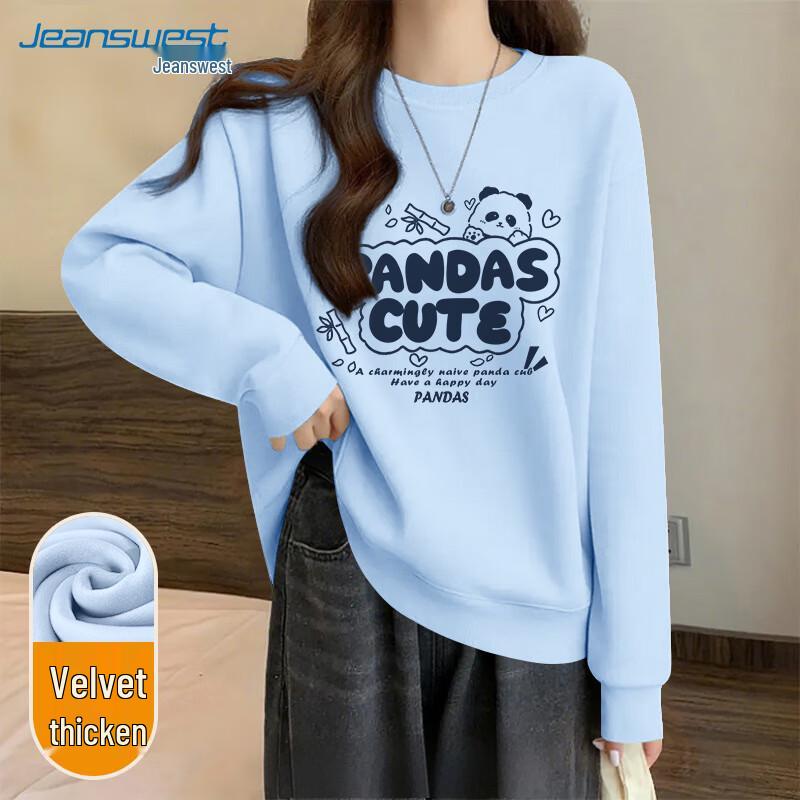 JEANSWEST Damen Plüschgefüttertes Oversize Rundhals-Sweatshirt