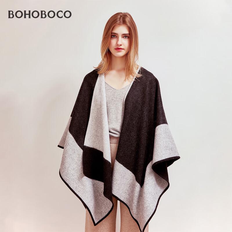 BOHOBOCO Damen Umhang Schal aus reiner Wolle