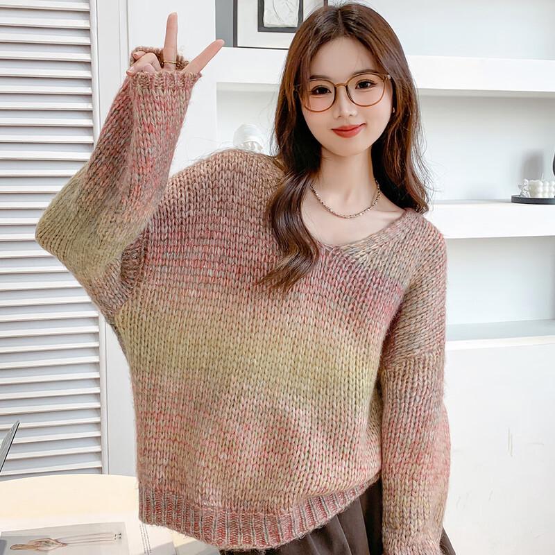 Mokana MKNJD2689 Women's V-Neck Long-Sleeve Knit Sweater