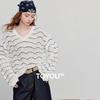 Chuyu Damen Wellenstreifen Lochstrick-Cardigan