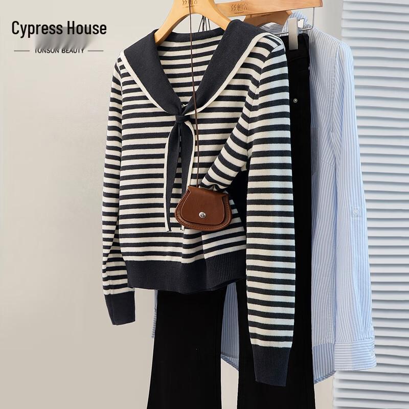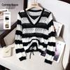 Damen Wollmischung Gestreifter Strickpullover