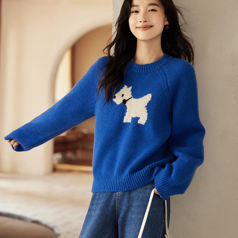 VICTORIA&VERA Women's Jacquard Cartoon Dog Loose Crew Neck Knitted Sweater