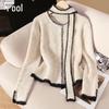 Damen Wollmischung Color-Block Rundhals Strickjacke