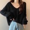 Lanzhi Damen V-Ausschnitt Strickpullover mit lockerer Passform NX819