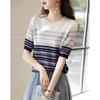 Demana Damen Colorblock Jacquard Stricktop mit halblangen Ärmeln