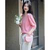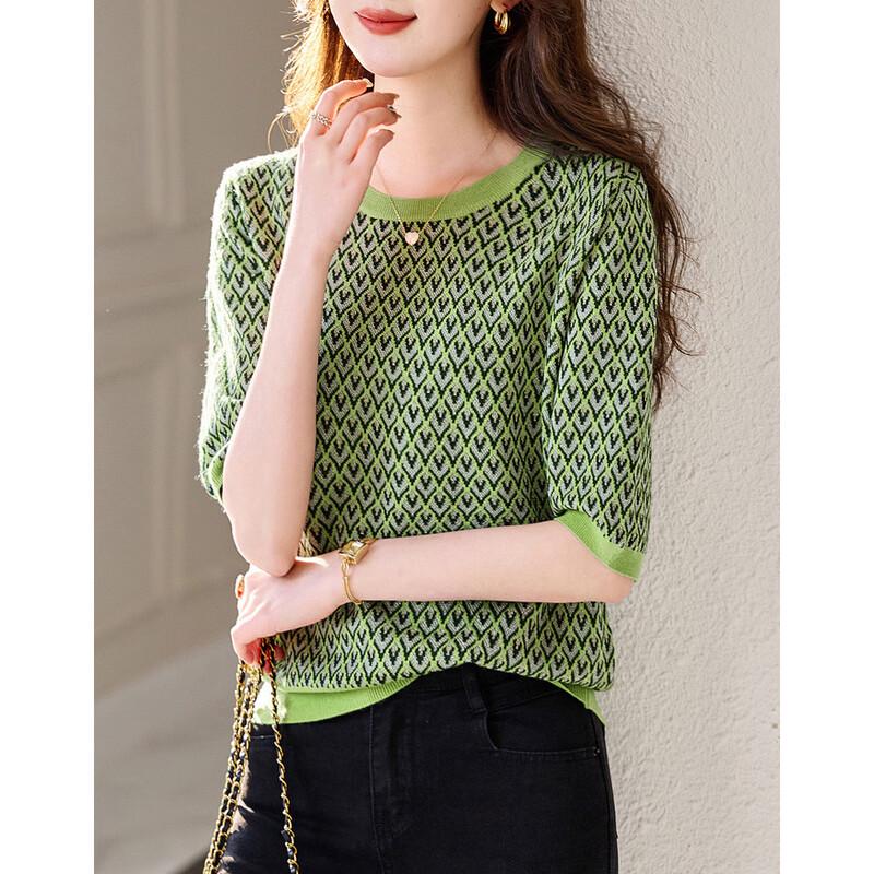 Demana Damen Dopamin-Stil Diamantmuster Kurzarm Top