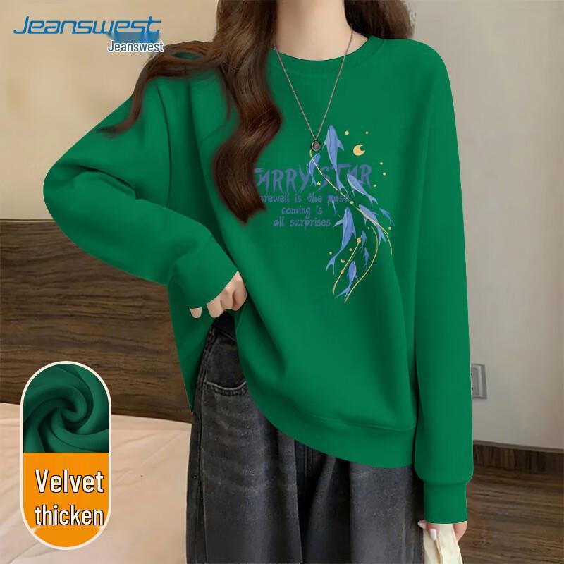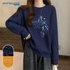 JEANSWEST Damen Plus Samt Galaxy Night Rundhals-Sweatshirt