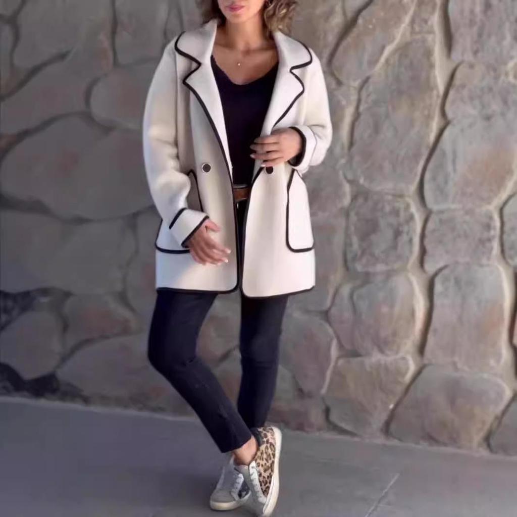 Entdecken Sie den Inbegriff von Mode und Funktionalität mit diesem stilvollen beidseitig tragbaren Wollmantel, entworfen für die Herbst/Winter-Saison 2024.. Gefertigt aus hochwertigem Polyester für verbesserte Isolierung, bietet dieser Mantel außergewöhnliche Wärme, ohne Kompromisse bei der Eleganz einzugehen.. Sein schickes Colorblocking-Muster verleiht einen modernen Touch, während die langen Ärmel und der figurbetonte Ausschnitt klassische Eleganz ausstrahlen.. Ideal für die anspruchsvolle Frau, die sowohl Wert auf Stil als auch auf Praktikabilität legt, verfügt dieser Mantel auch über praktische Taschen für zusätzlichen Nutzen.. Hüllen Sie sich in luxuriösen Komfort und setzen Sie diese Saison ein mutiges Mode-Statement.