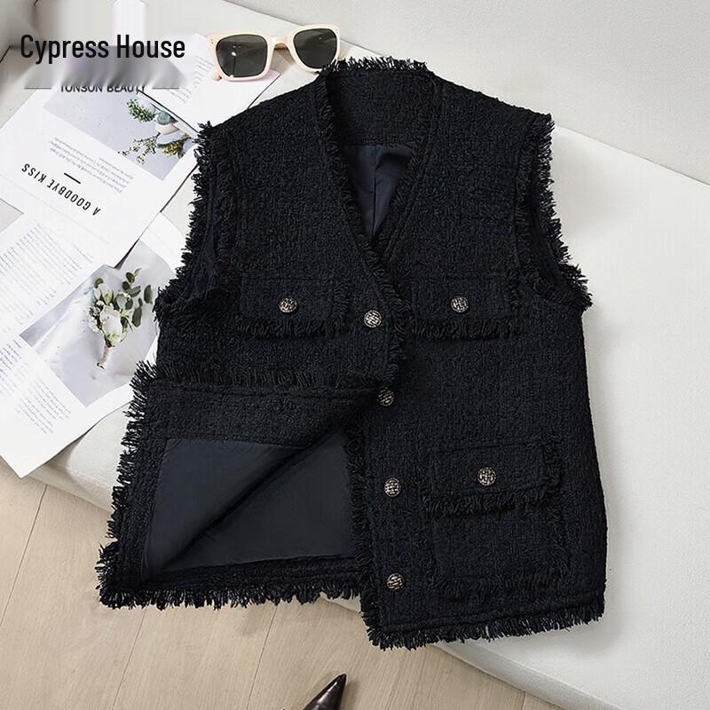 Sibaishai Women's Chic V-Neck Contrast Button Vest