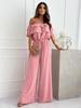 2024 One-Shoulder Ruffle Tie-Waist Wide-Leg Jumpsuit for Women