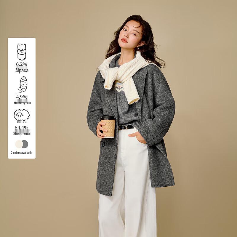 INMAN Women's Alpaca Silk Blend Double-Faced Wool Coat