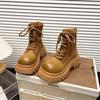 Rhabarberstiefel Damen 2025 Sommer neu Retro Schnürung Revers Zwei Tragemöglichkeiten Lässige Lokomotivstiefel Kurze Stiefel Arbeitsstiefel Damen
