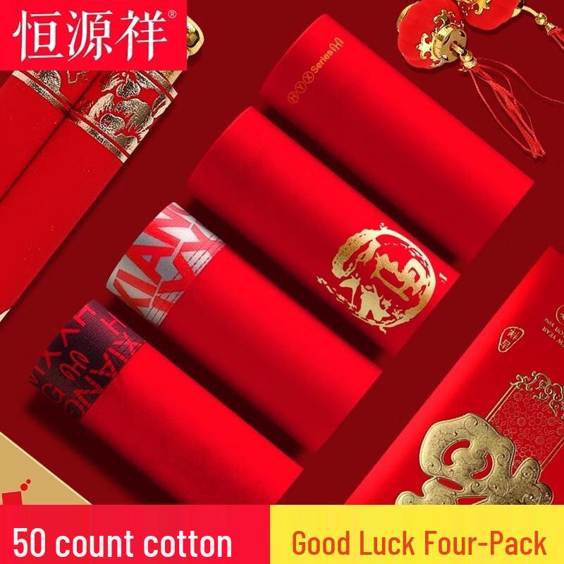 Hengyuanxiang Men's Red Combed Cotton Boxer Briefs 4-Pack
