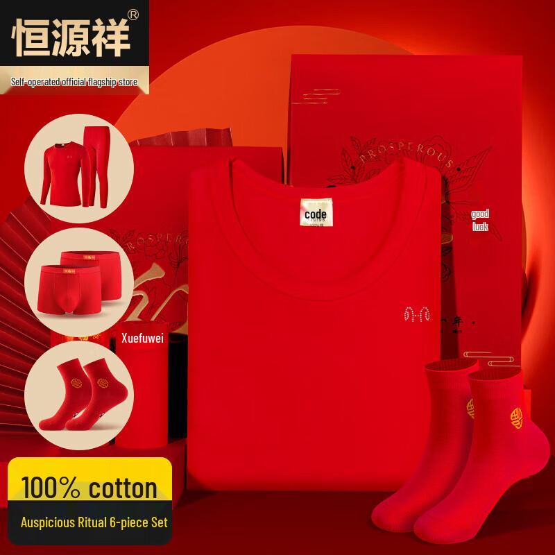 Hengyuanxiang Men's Red Thermal Underwear Bundle
