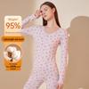 Damen Baumwolle Blumendruck Dünnes Thermounterwäsche-Set