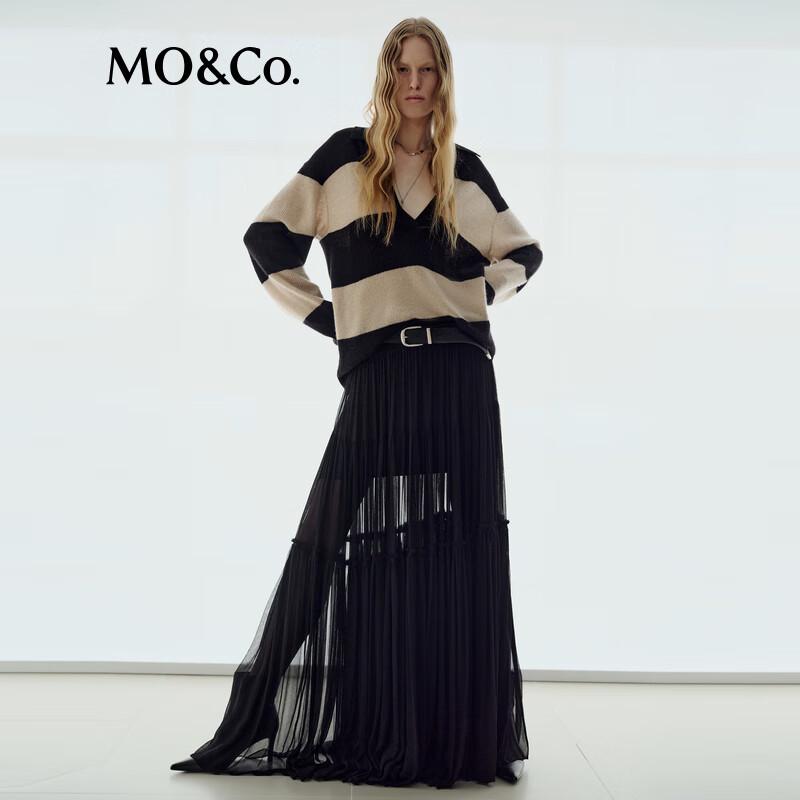 MO&Co. Women's Striped V-Neck Knit Sweater
