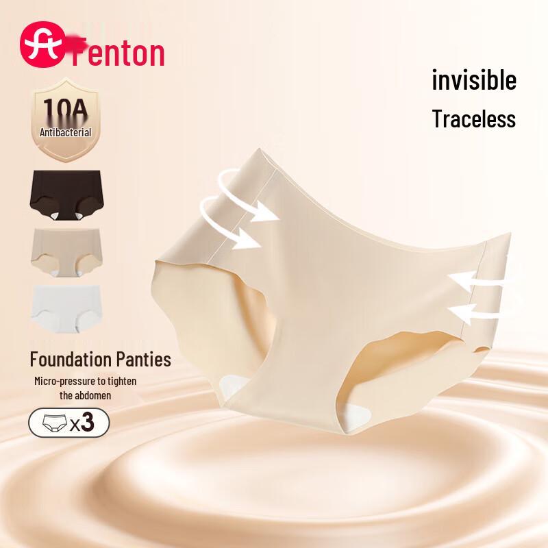 Fenteng Women's 10A Antibacterial Seamless Mid-High Waist Briefs 3-Pack