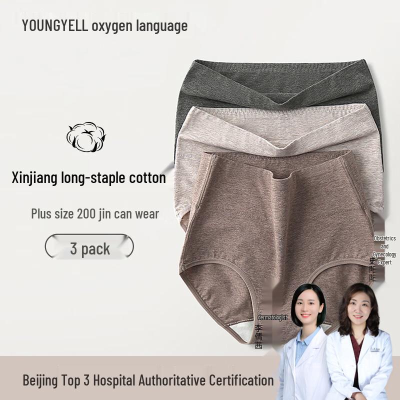 YOUNGYELL Women's High-Waist Antibacterial Cotton Underwear 3-Pack