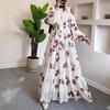 Elegantes Damen-Chiffon-Maxikleid mit Blumenmuster und Gürtel - Rundhalsausschnitt, Urlaubsstil