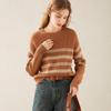 TUHUANG Damen Verdickter 100% Wolle Colorblock Rundhals-Pullover