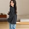 Srcr Women's Retro Striped 3/4 Sleeve Wool Knit Sweater