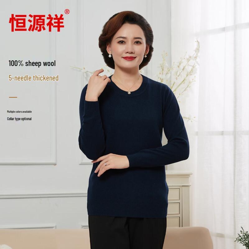Hengyuanxiang Women's Pure Wool Thick Knit Sweater