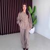 2025 Autumn Women's Round Neck Long Sleeve Waist-Tied Single-Breasted Wide Leg Pants Set