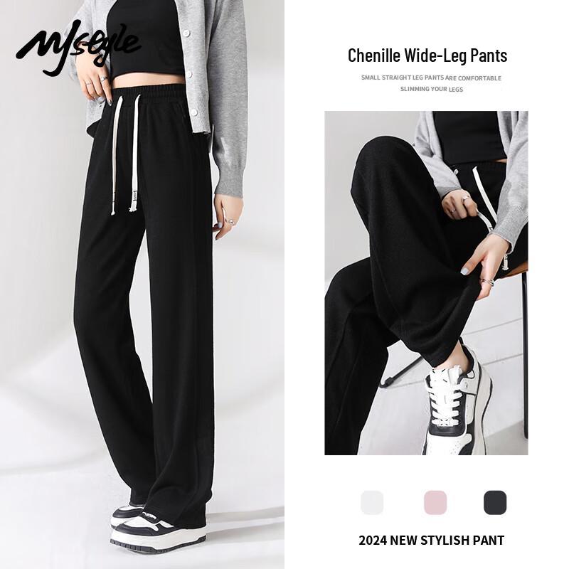 MJ STYLE Damen Chenille High-Waist Weitbein Hose