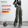 FitonTon Damen High-Waist Kordelzug Fallschirm Cargo Weitbein Hose