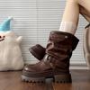 Rindslederversion~ innenliegende Höhenerhöhung Retro Maillardbraune Martin-Stiefel Damen 2025 neu Herbst und Winter zwei Tragevarianten Plateau Kurzstiefel