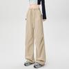 Damen High-Waist Kordelzug Cargo Weitbein Hose