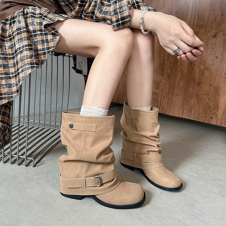 Fashion Boots~ Inner Height Increasing Western Cowboy Pile Boots Women's 2025 Fall Pleated Pants Short Boots Vintage Boots