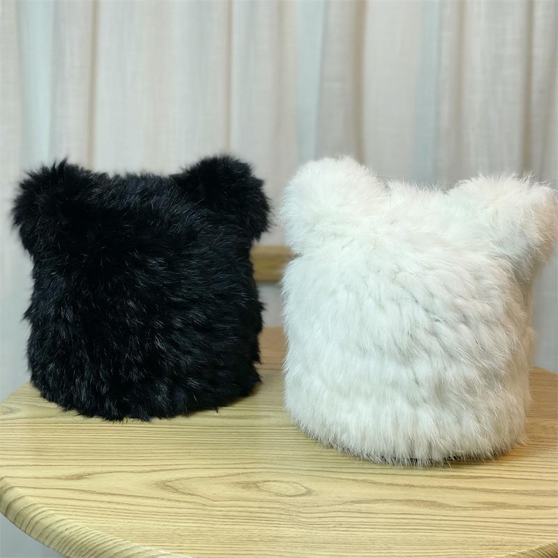 Bear Ears Rabbit Fur Hat Women's Autumn and Winter Woolen Hat Baotou Hat Warm and Show Face Small Knitted Fur Hat Rex Rabbit Fur